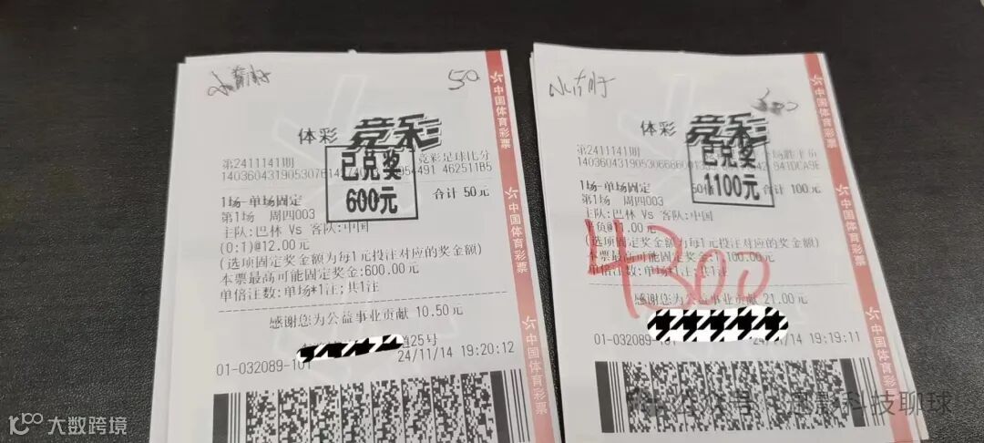 昨日中奖单: