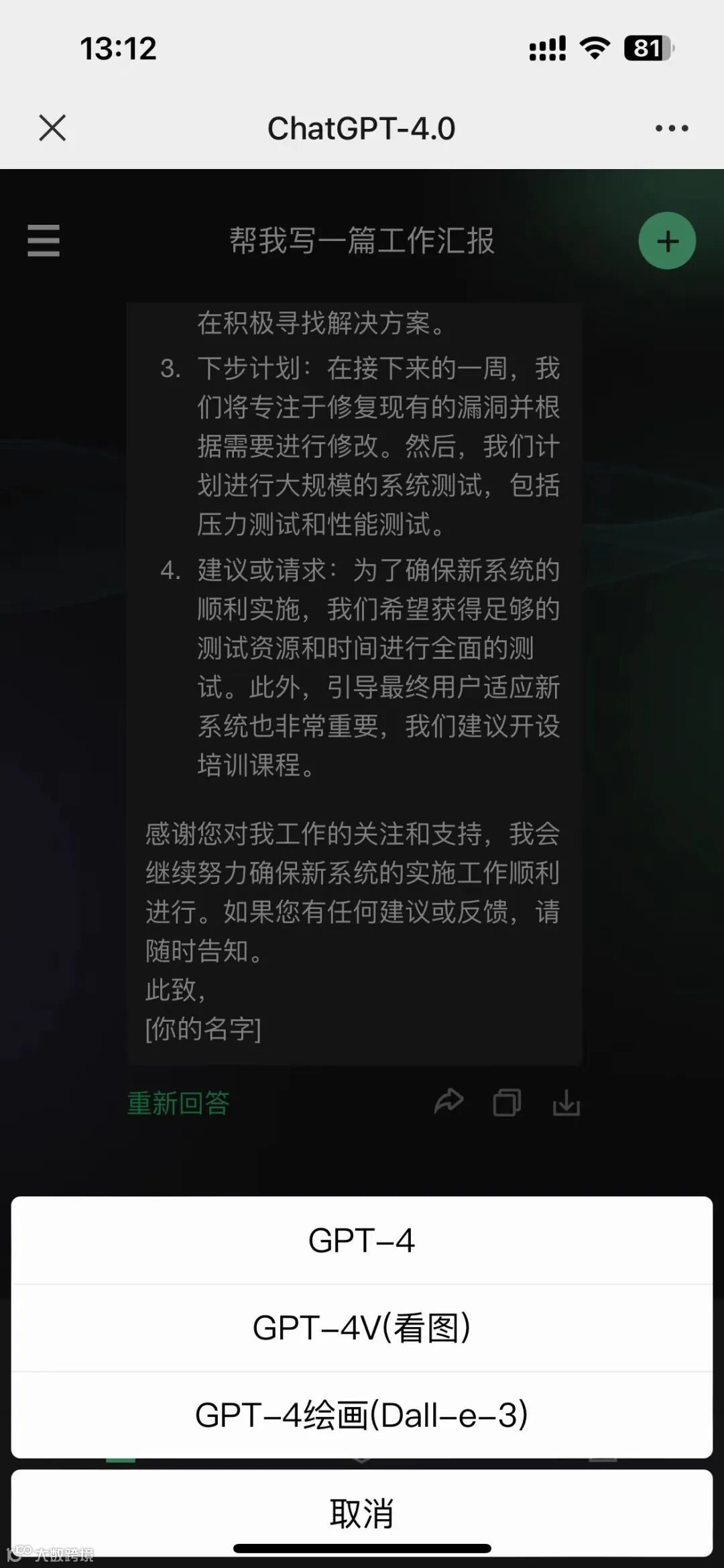 切换至图中【GPT-4绘画】后,即可直接对AI说出绘画要求!