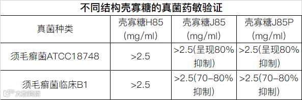 2、针对临床中常见的须毛癣菌,选取3种不同结构的壳寡糖试验,结果如下: