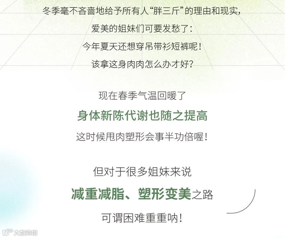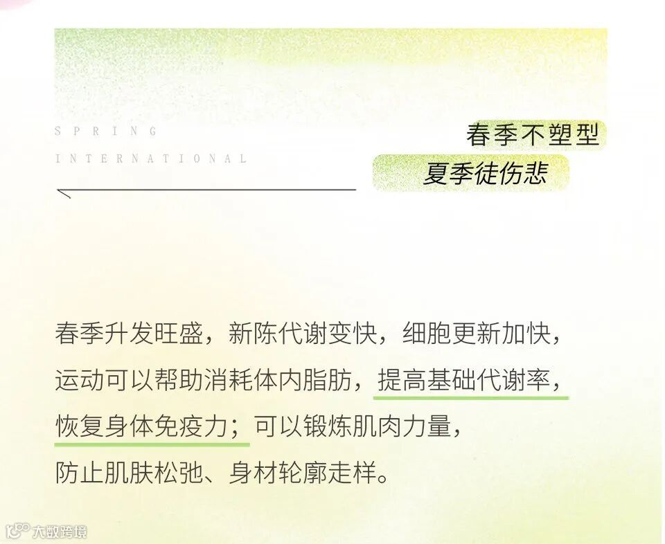 导读:春季身体新陈代谢提高,这时候甩肉塑形会事半功倍喔!