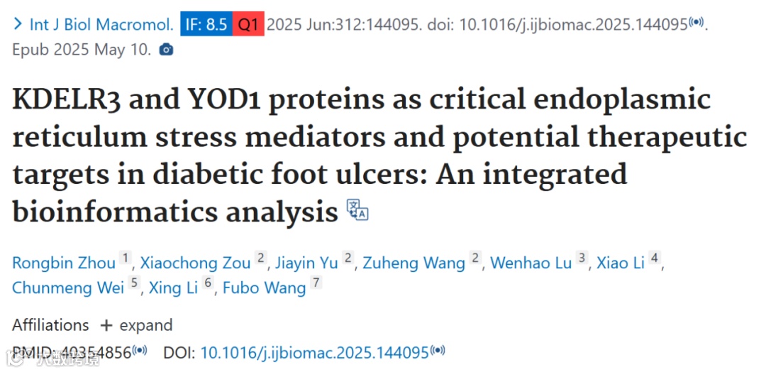 糖尿病足溃疡(DFU)是糖尿病最严重的并发症之一,全球数百万患者受其影响,与高感染率、截肢率和死亡率密切相关。其核心病理机制为慢性高血糖诱发周围神经病变、血管损伤及组织修复障碍,导致慢性难愈性伤口。尽管伤口护理、减压、感染控制等治疗策略已广泛应用,但临床结局仍不理想,复发率较高。内质网(ER)在蛋白质合成、脂质代谢和钙稳态中起关键作用,为蛋白质折叠提供适宜环境。高血糖等条件会破坏细胞稳态,导致未折叠或错误折叠蛋白积累,引发内质网应激(ERS)并激活未折叠蛋白反应(UPR)。在DFU 中,高血糖诱导的ERS 通过损害蛋白折叠和激活炎症通路加剧疾病进展。研究显示重度DFU 患者ERS 标志物升高,与miR-146a 下调及炎症基因激活相关,且FOXM1-TRIM72-AMPKα 信号轴紊乱会加重ERS 并阻碍愈合。因此,研究ERS 相关基因对DFU 新型生物标志物和治疗策略的发现至关重要。