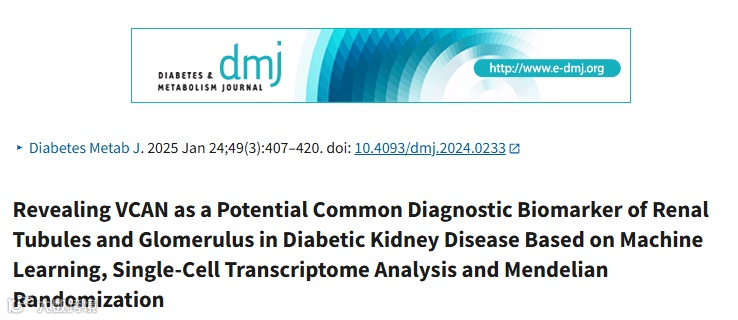 纯生信也能发高分!!!机器学习+单细胞+孟德尔随机化,锁定糖尿病肾病双部位诊断标志物VCAN。没有自测序数据也能发高分!这篇发表在《Diabetes & Metabolism J》(IF 8.5,中科院2区,JCR Q1)的研究,仅利用GEO公共数据库数据,整合机器学习、单细胞转录组和孟德尔随机化三大核心技术,成功筛选出糖尿病肾病(DKD)肾小球与肾小管共有的诊断标志物VCAN,思路清晰、可复制性极强,生信人必看!