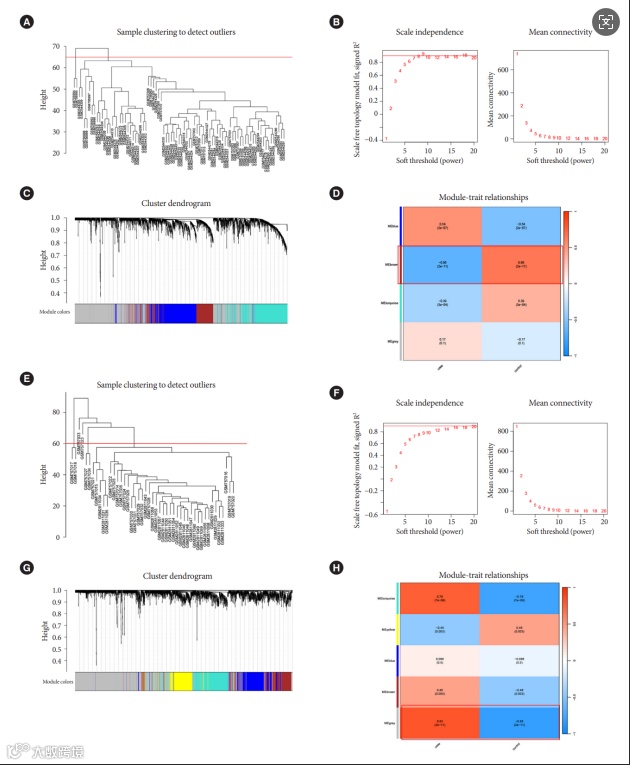 图2加权基因共表达网络分析(WGCNA)鉴定关键模块