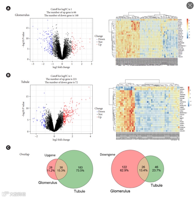 图1肾小球与肾小管差异表达基因(DEGs)筛选