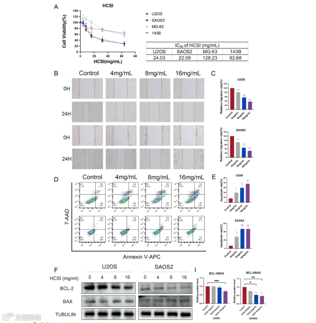 图8 HCSI在体外抑制骨肉瘤细胞的增殖和迁移