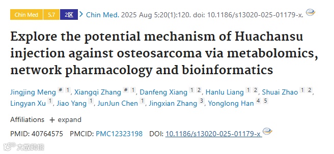 华蟾素注射液(HCSI)作为源于中华大蟾蜍皮肤提取物的中药制剂,在骨肉瘤治疗中展现出潜在价值。发表于《Chinese Medicine》(2025年,影响因子5.7)的研究通过整合代谢组学、网络药理学与生物信息学方法,系统揭示了HCSI抗骨肉瘤的分子机制,为骨肉瘤的靶向治疗及中药抗肿瘤研究提供了新视角。