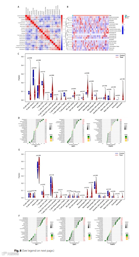- 免疫浸润分析显示,M1巨噬细胞浸润增加且与上述关键基因呈正相关,血浆细胞等浸润减少且呈负相关,揭示了免疫细胞与基因的关联模式。