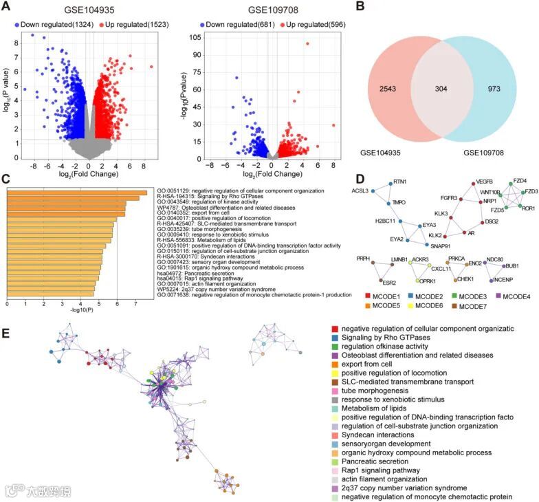 图1.抗雄激素抵抗差异表达基因(ARRDEGs)的鉴定与功能富集分析。