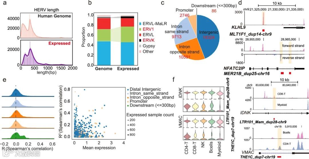 2、首次在大规模数据中证实PBMC中HERV表达独立于邻近基因,且细胞类型特异性HERV表达由表观遗传状态驱动(如富集于活性染色质区域),填补领域空白。