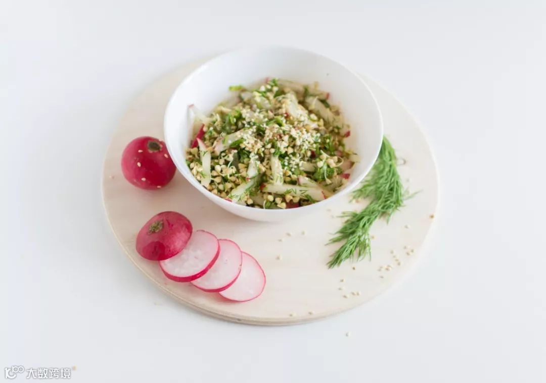 做法:加入醋或油醋汁拌在一起即可,千万别用沙拉酱,热量太高