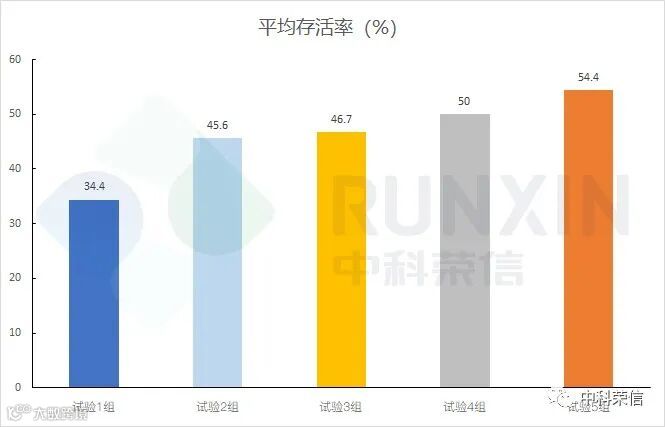 2、在联合用药方案中,当荣创-J85添加剂量为2000mg/kg饲料时平均存活率最高。