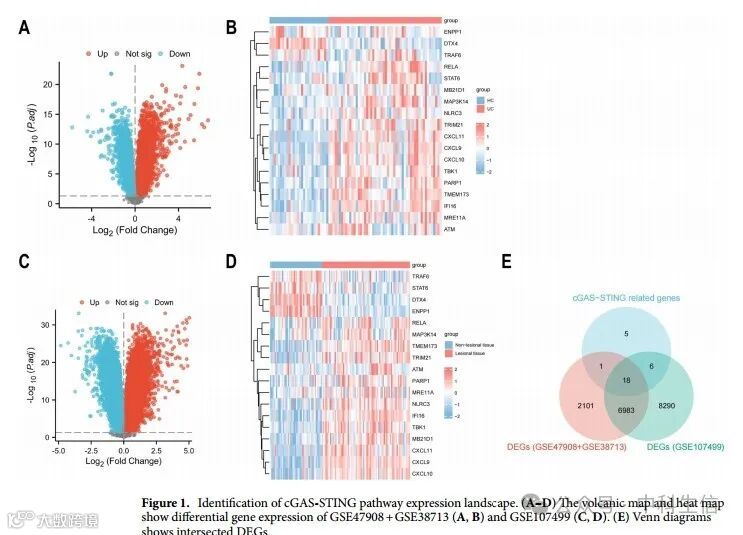 在本研究中,旨在系统总结cGAS-STING通路相关基因并确定UC中的枢纽基因。此外,UC患者根据cGAS-STING通路相关基因进行分类。进一步研究和验证了hub基因与抗TNF治疗功效之间的相关性。最后,分析了癌症中hub基因的表达。