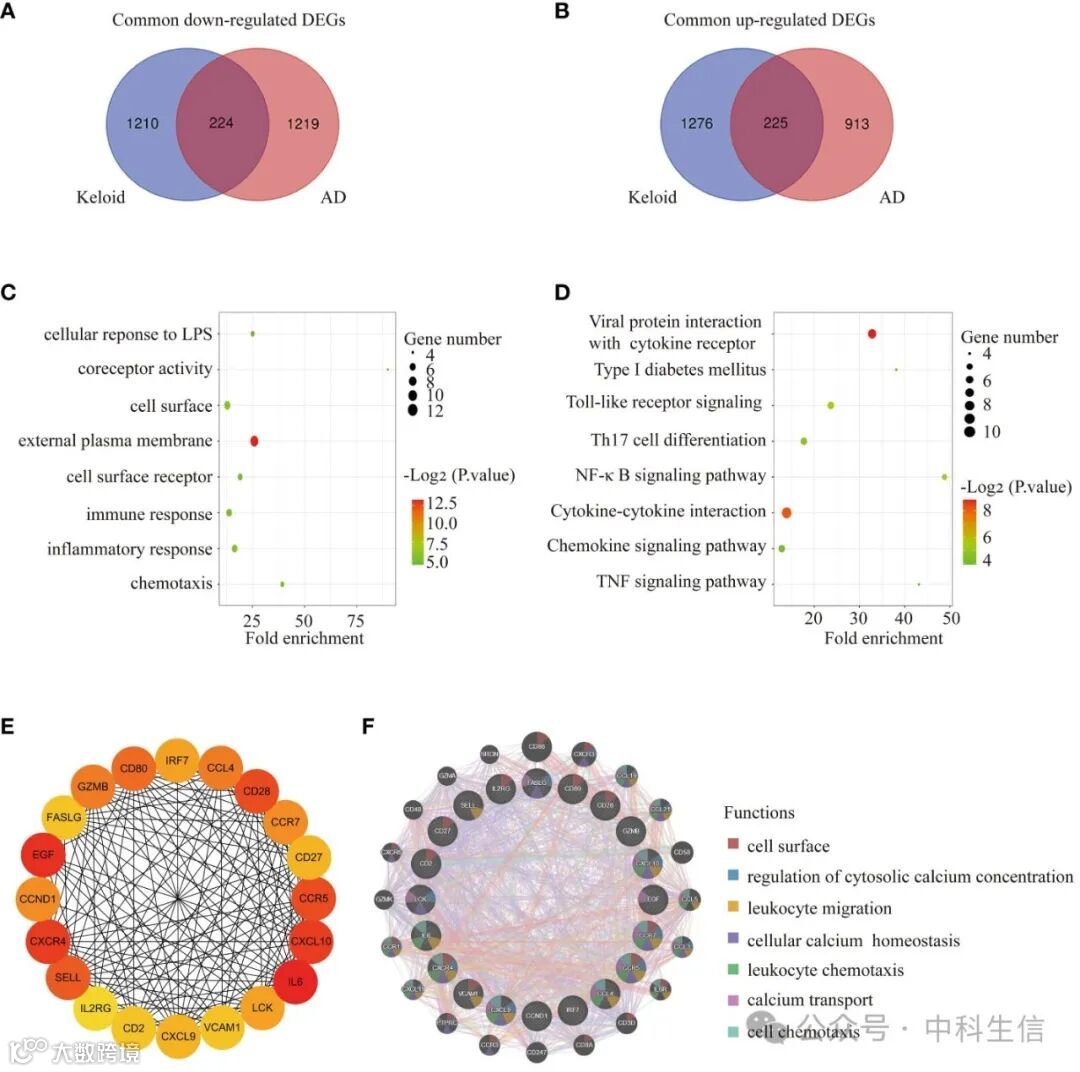 瘢痕疙瘩和AD之间常见DEGs的功能注释
