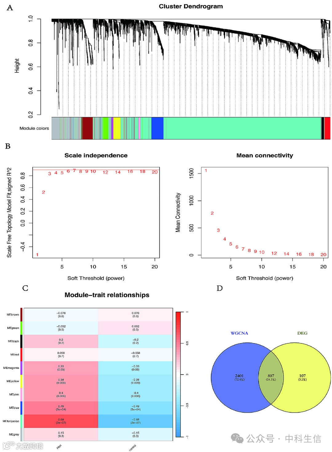 2.通过加权基因共表达网络分析(WGCNA)确定与PAH相关的模块;