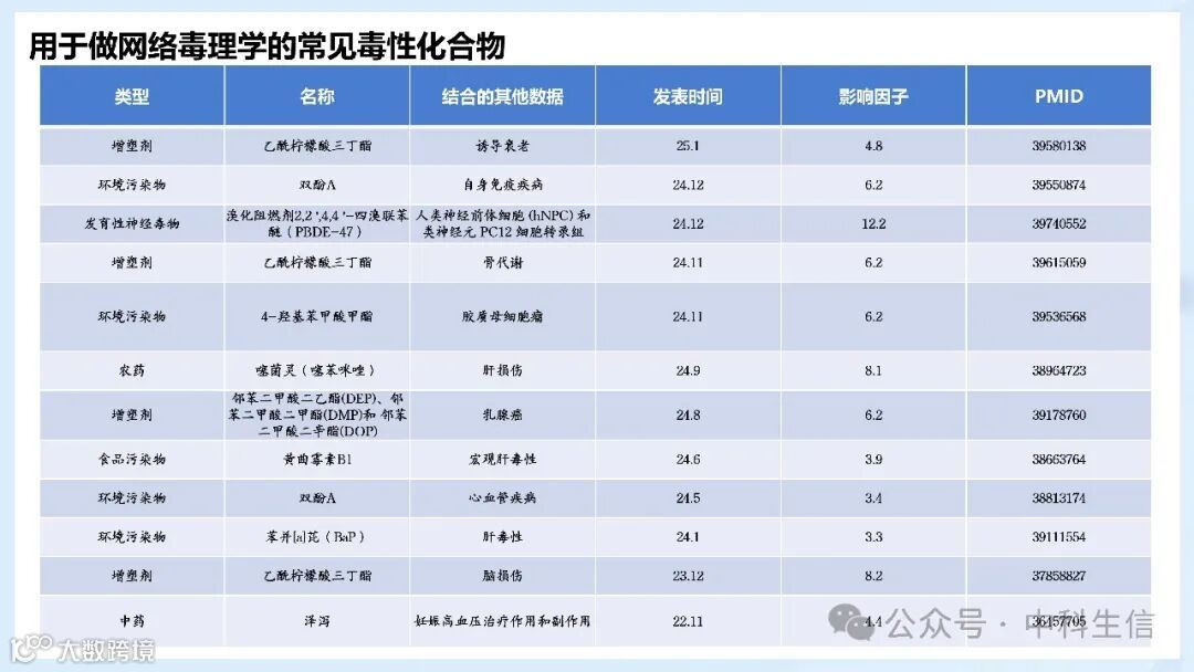 现在正是网络毒理学最好发文的时候!网络毒理学结合了毒性、靶蛋白和生物途径的信息,通过生信