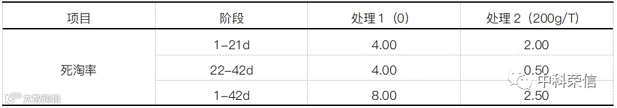 四川农业大学在壳寡糖对肉鸡生产性能的影响研究中死淘率表现