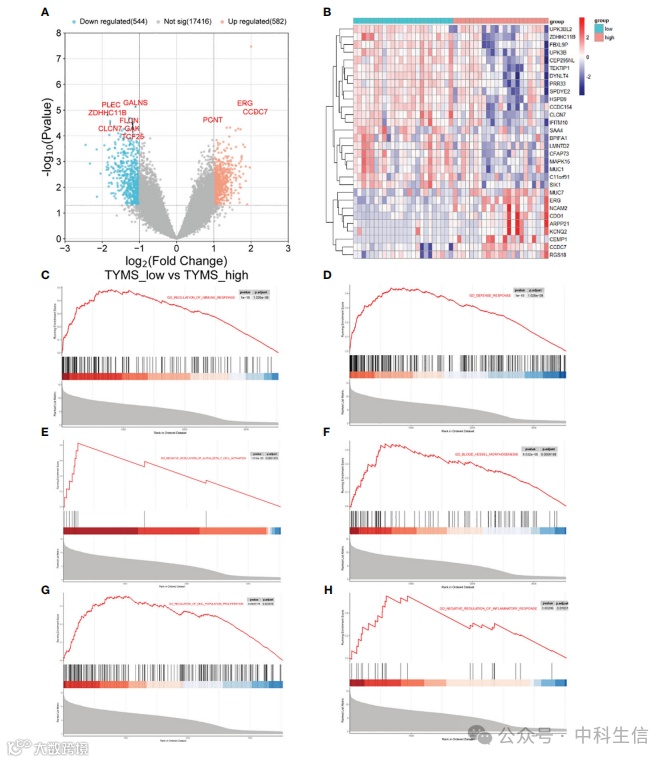 患者,浓缩分析揭示了信号通路的上调参与调节免疫系统过程,防御反应,负调控