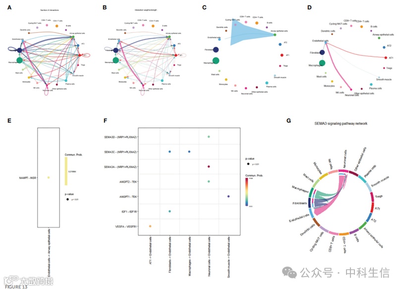 内皮细胞接收信号的通信通路及其各自的强度在网络图中可视化。