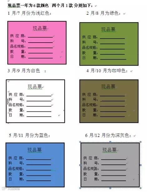 送货必须包装完好且与《送货单》一致,《送货单》需填写供应商名称、采购单别、单号、送货日期、采购单单号对应的序号、品号、规格、单位、数量、备注等。包装外箱必须张贴我司《现品票》及《ROHS》标,《现品票》需按月份颜色进行张贴,《现品票》需标示清楚供应商名称、物料品号、物料规格、数量、送货日期。