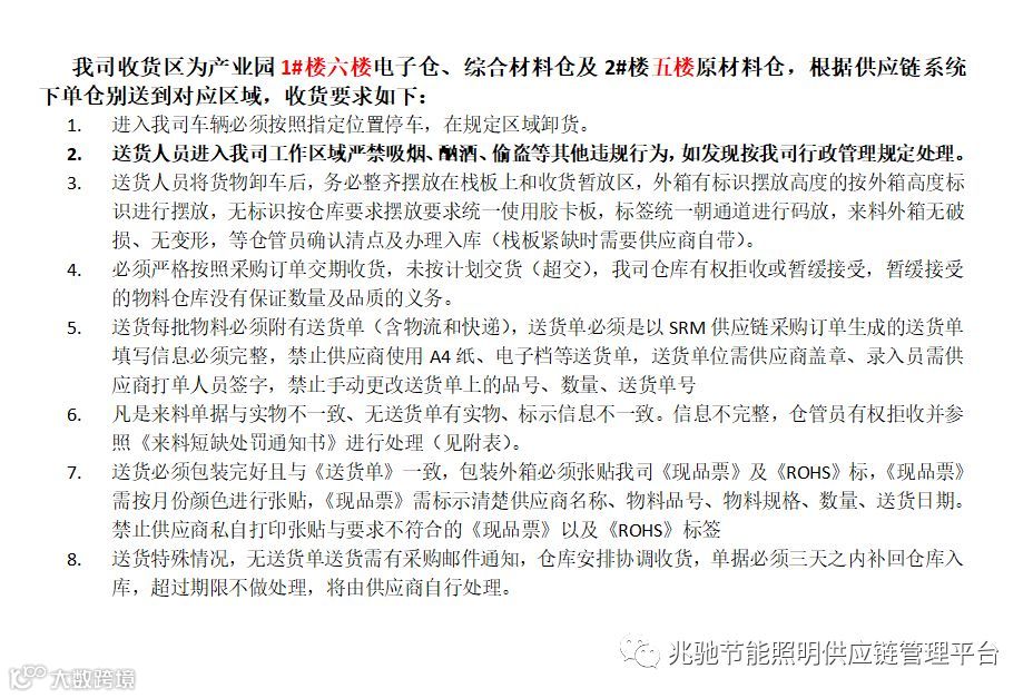 导读:供应商送货流程及要求 2019年6月更新 本文章为深圳市兆驰节能照明股份有限公司原创作品,未经许可,禁止转载。