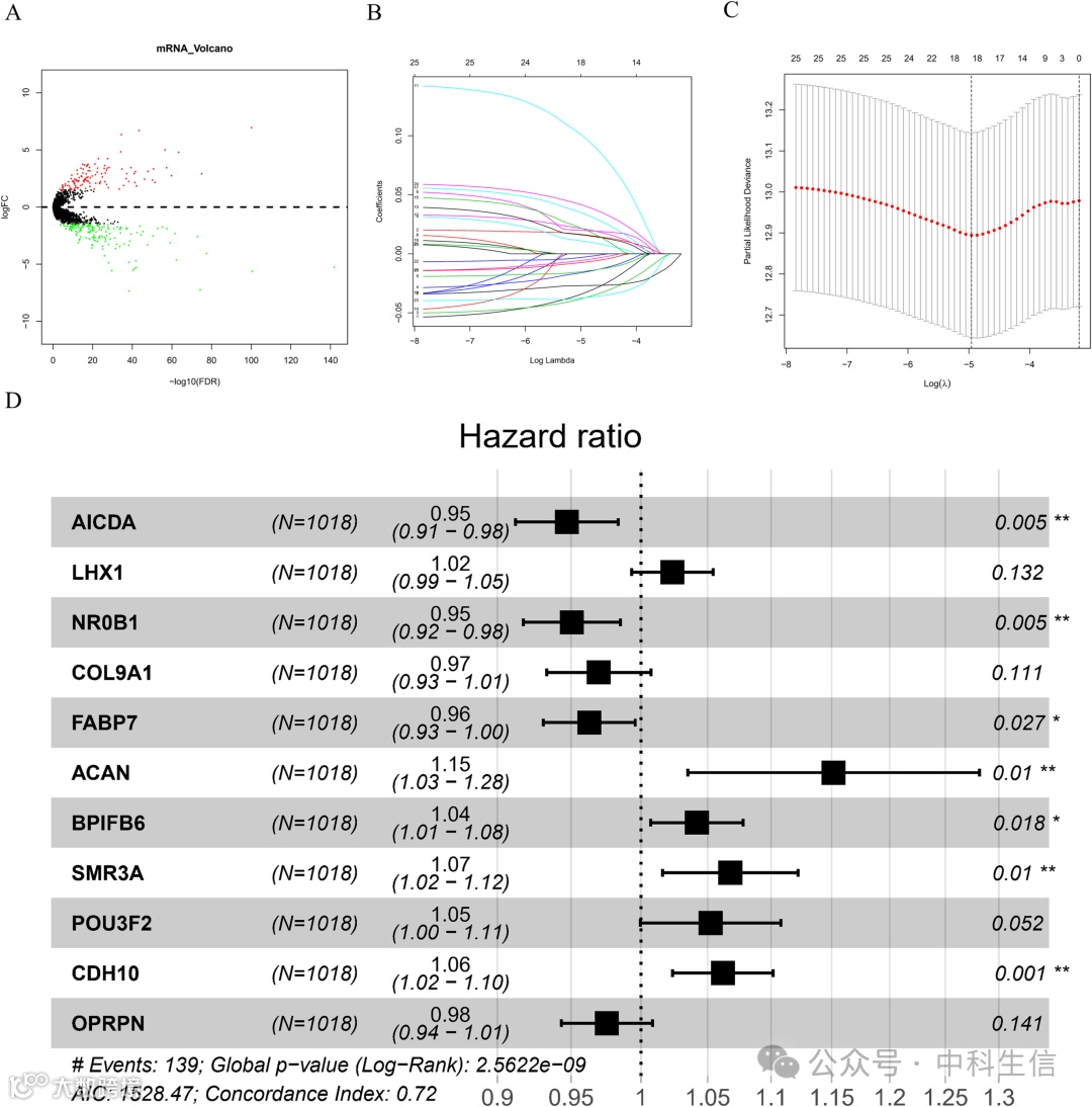(一)差异表达基因的鉴定及预后风险模型的构建