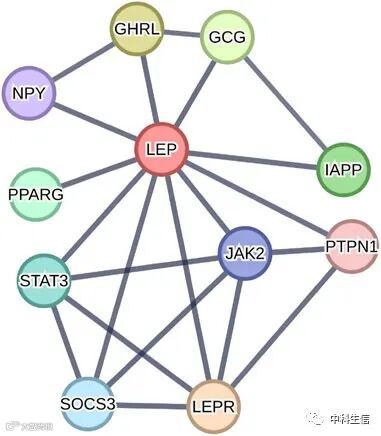 获得了具有14个节点的PPI网络。STRING 数据库分析确定了 10 种瘦素结合率最高的蛋白。如图 7 所示,GCG、IAPP、LEPR、GHRL、STAT3、PPARG、SOCS3、NPY、JAK2 和 PTPN1 被预测与瘦素具有强相互作用。然后,对通过STRING工具预测的蛋白质进行了GO分子功能和KEGG分析。GO_MF分析显示,信号受体结合和激素活性的相关性存在显著差异。KEGG分析显示与脂肪细胞因子和JAK-STAT信号通路的相关性存在显著差异。KEGG分析显示,STAT3、SOCS3、LEPR、JAK2和NPY在脂肪细胞因子信号通路中与瘦素相关,STAT3、SOCS3、LEPR和JAK2与JAK-STAT信号通路中的瘦素相关,提示瘦素可能与这些蛋白相互作用,激活PE中的脂肪细胞因子和JAK/STAT信号转导。