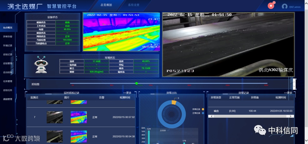 该项目是淮北矿业智慧矿山重点专项项目,于2021年4月启动,项目联合中国科学院合肥物质科学研究院、中国电科第八研究所等单位组成的“产学研用”优势团队,依托中科信同国际领先的全行业智慧无人值守系统及安全信息管理平台开发应用经验,以皮带防跑偏、防撕裂,溜槽防堵,托辊异常,温度和安全环境异常监测等为研究对象,运用图像识别、单目三维投影、深度学习检测和分类算法等技术,经过1年的科技攻关,研发了皮带机智能检测系统。实现皮带输送机智能化、一体化管控的“质”突破,显著提升了智慧矿山无人值守智能装备能力和自主创新水平。