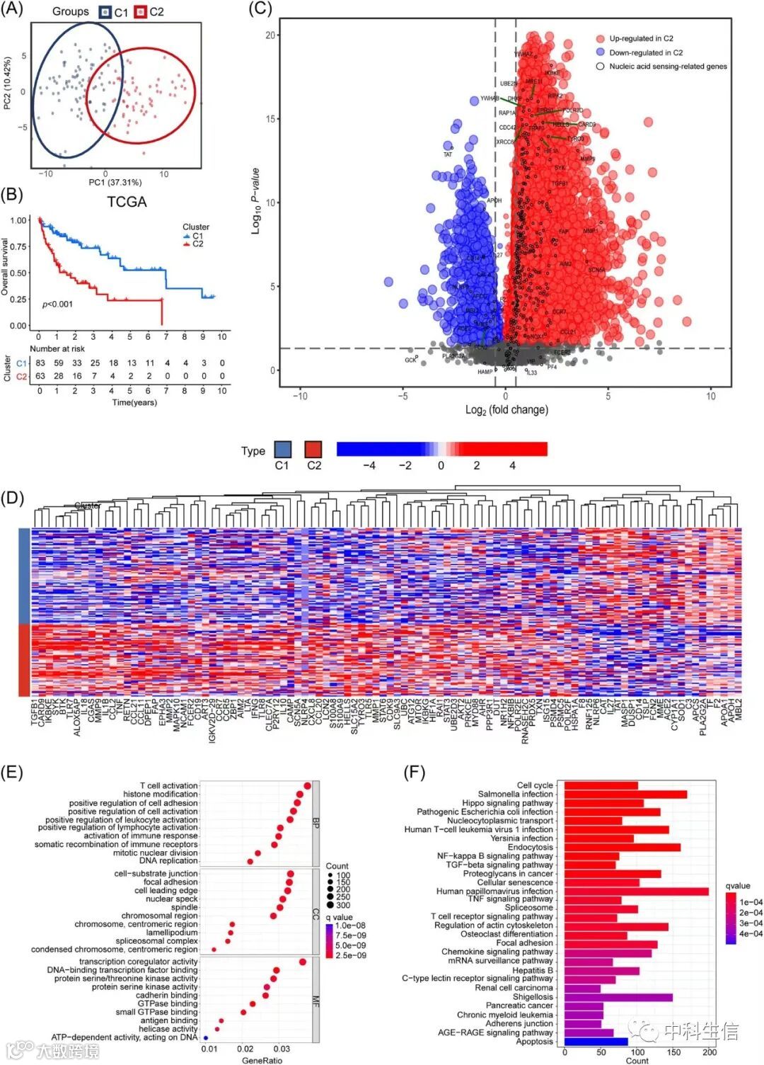 缩写:HCC,肝细胞癌;NAS,核酸感应;PCA,主成分分析;C1,Cluster 1;C2,Cluster 2;OS,总生存率;DEG,差异表达基因。