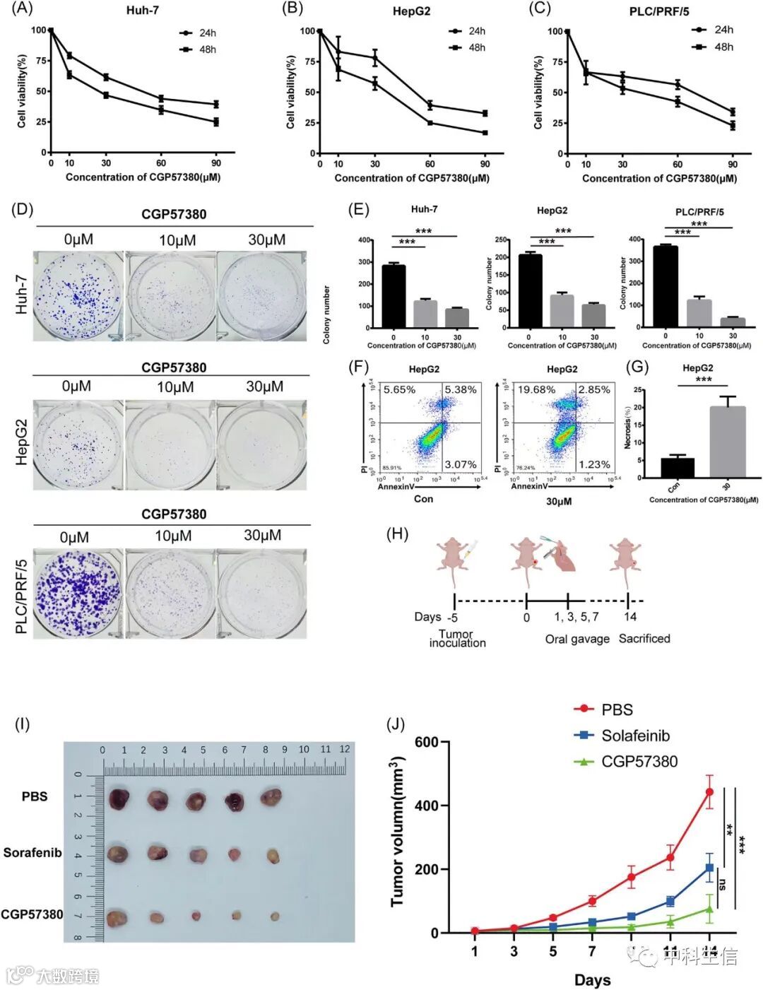 七、候选小分子药物(CGP-57380)的抗肿瘤效果检测。