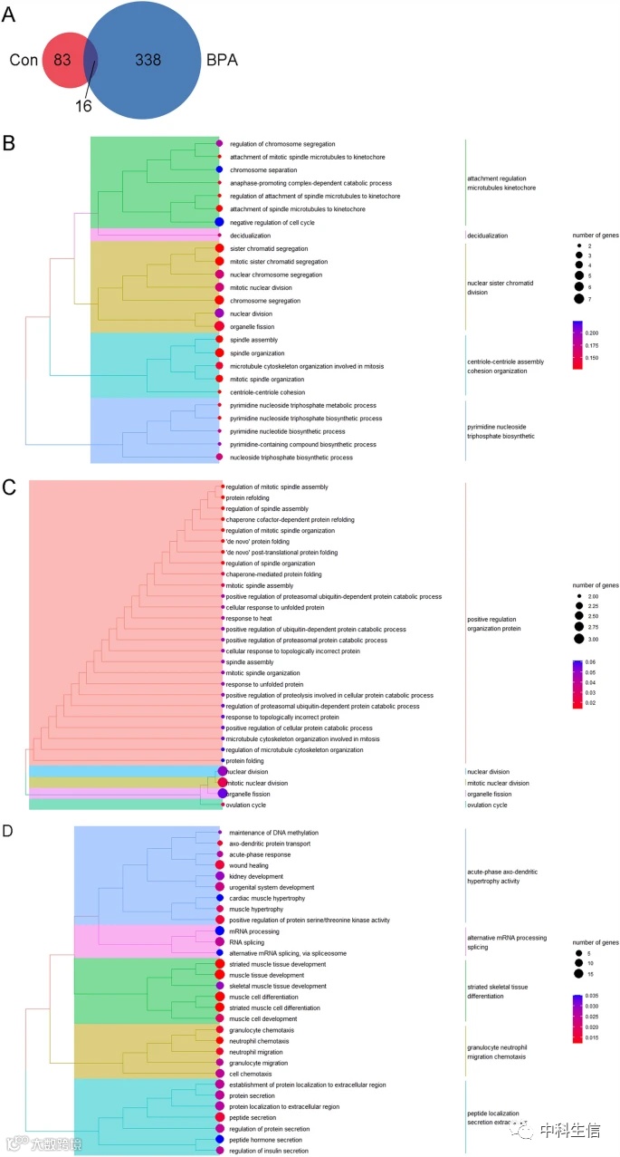 5.对对照组和BPA组中的所有DEGs、对照组或BPA组中的DEGs以及交叉组的DEG进行GO分析