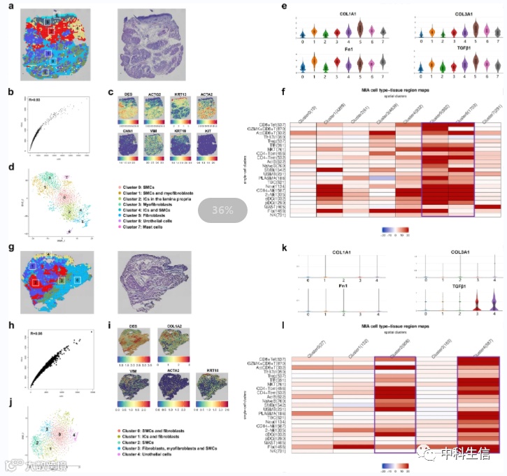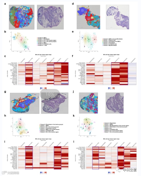 膀胱中,几乎所有的免疫亚群都富集在尿路上皮区域或靠近成纤维细胞的位置,但在对照膀胱中,它们是在尿路上皮和平滑肌细胞周围被发现的。这些发现描绘了