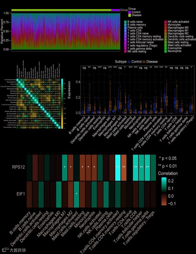 核心通路:GSEA富集分析发现,EIF1和RPS12显著富集于核糖体生物合成 和氧化磷酸化 等通路。这意味着它们通过增强细胞的蛋白质合成能力和能量代谢,为癌细胞的快速增殖和适应应激环境提供“动力源”。它们还与免疫细胞浸润密切相关,能影响细胞毒性T细胞、辅助性T细胞、巨噬细胞等多种免疫细胞的功能,从而重塑免疫微环境,帮助肿瘤实现免疫逃逸。