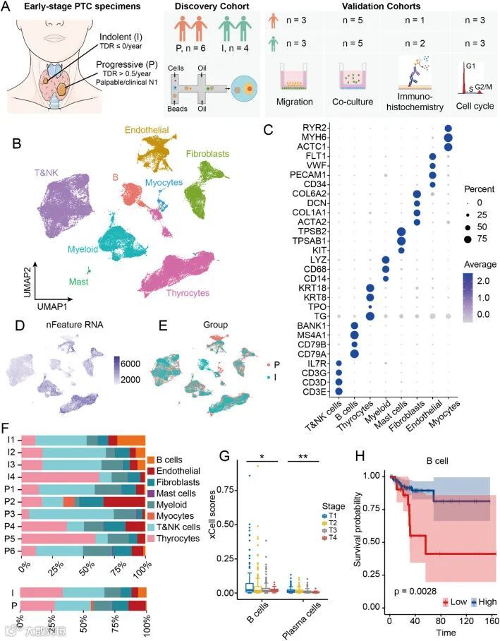 1.研究发现肿瘤浸润性B细胞(TIL-B)在惰性型PTC中显著富集,而在进展型PTC中几乎消失。