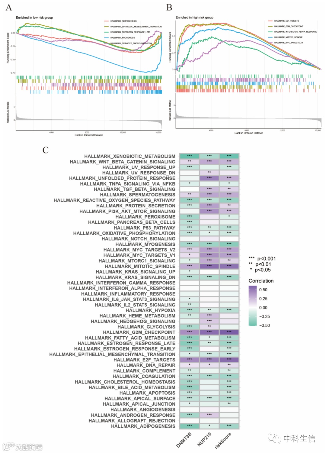 分别探索了高风险和低风险亚组中激活的信号通路。发现在低风险亚组中,被激活的前