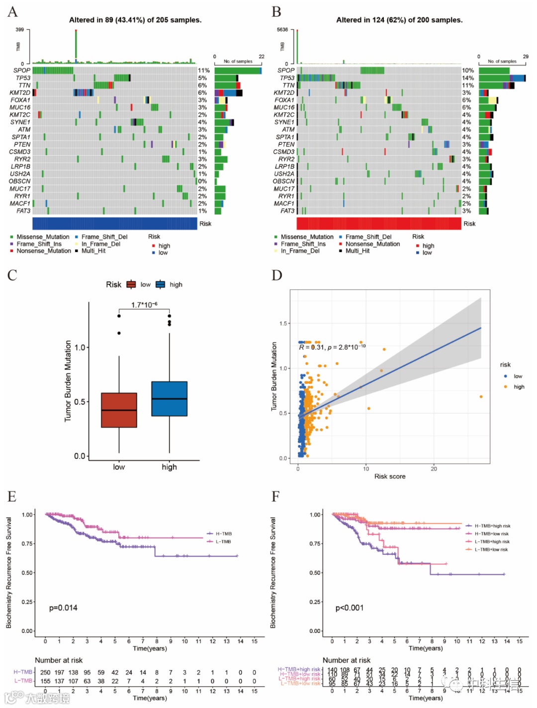 评分都明显低于低危组,这表明低危组患者可以从免疫治疗中获益更多。使用