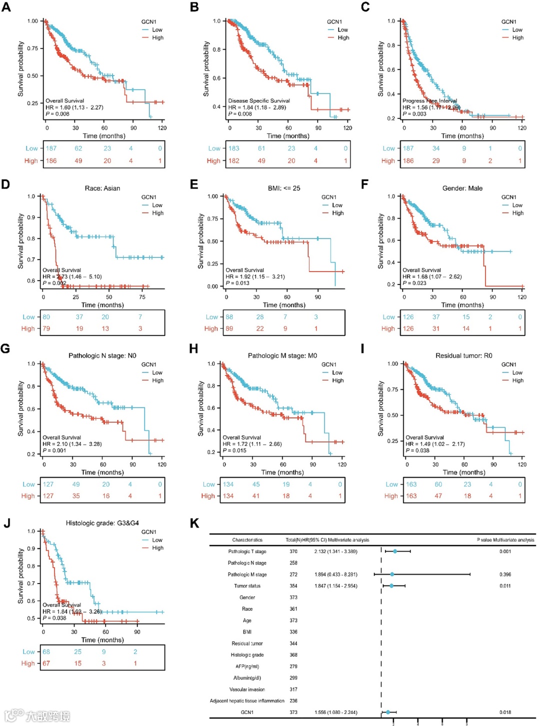图4. GCN1在肝细胞癌诊断与预后中的价值