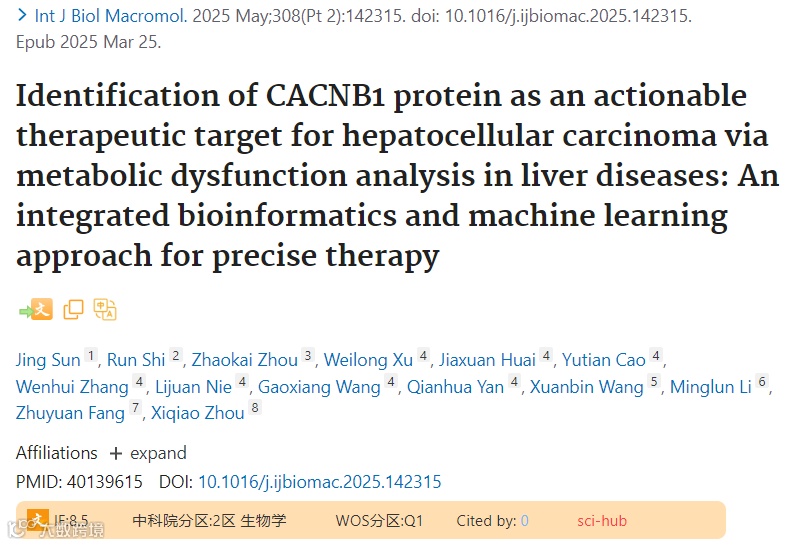 题目:Identification of CACNB1 protein as an actionable therapeutic target for hepatocellular carcinoma via metabolic dysfunction analysis in liver diseases: An integrated bioinformatics and machine learning approach for precise therapy