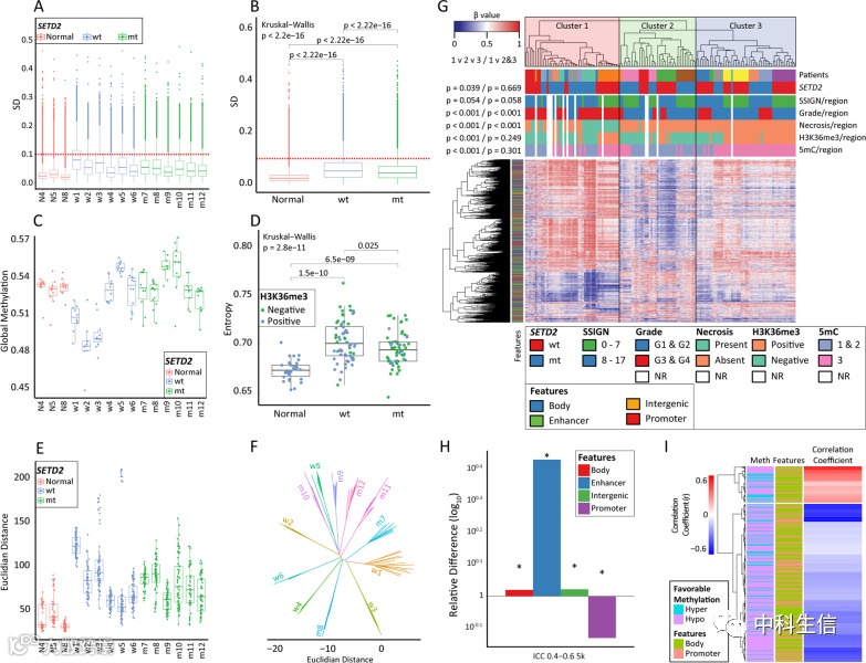 肿瘤中的表观遗传异质性显著升高,并受 SETD2 状态的影响