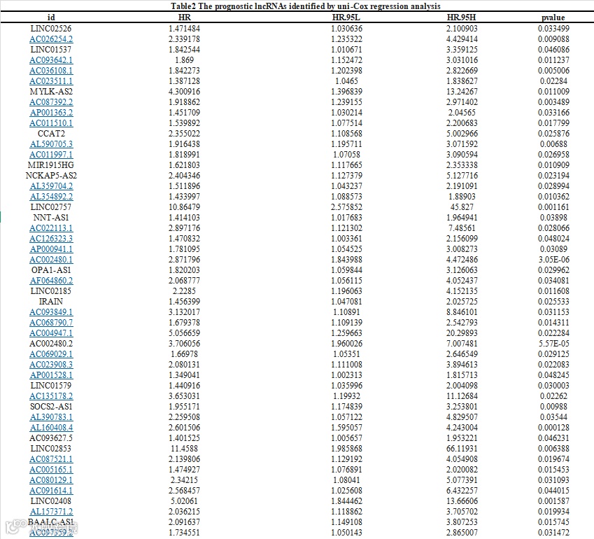 2.1鉴定最终模型的线粒体相关lncRNA特征