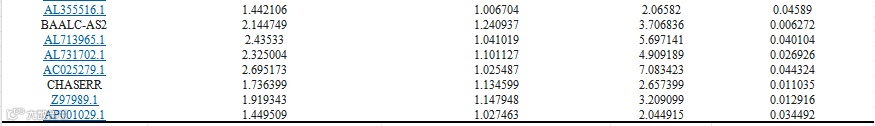 2.8 风险特征中靶标lncRNA的筛选