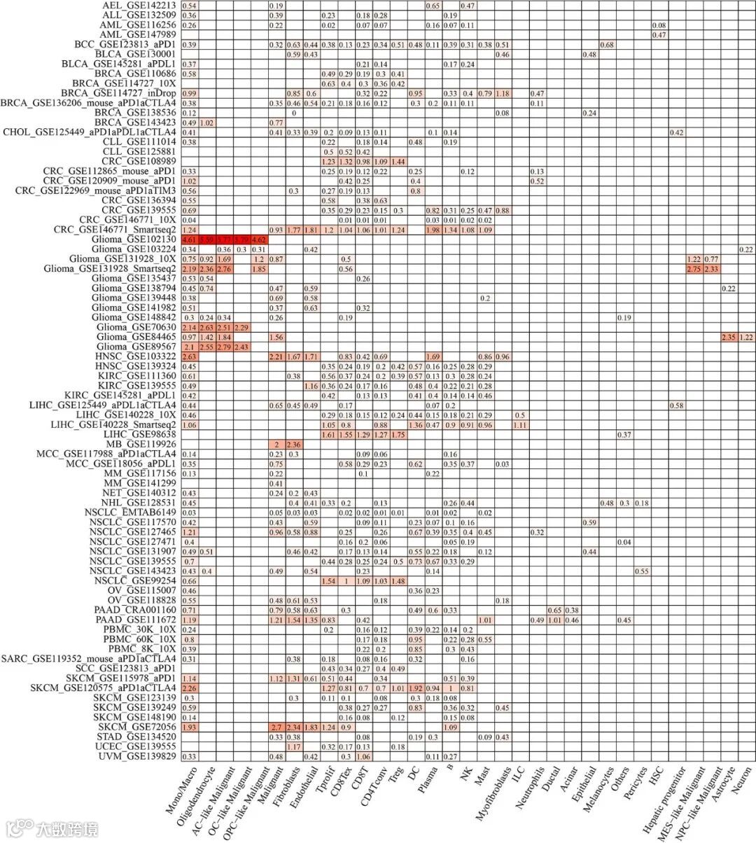 利用TISCH数据库在单细胞水平上分析33种细胞类型中ACTR2和NCSTN的表达水平,发现ACTR2和NCSTN在单/宏细胞中的表达水平均最高。在多个肿瘤数据集上,并在单/宏细胞中表达增加。ACTR2在CD8Tex、CD8T、DC、中性粒细胞、Tproli CD4Tconv、Treg、恶性、内皮细胞、成纤维细胞、B、NK、Mas和浆细胞中表达。与ACTR2相似,NCSTN在恶性细胞、成纤维细胞、内皮细胞、Tproif、CD8Tex、CD8T、CD4Tconv、Treg、DC、血浆、B和NK细胞中具有较高的表达水平。