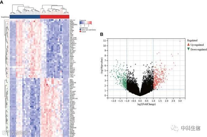 在AVC组合数据集中共鉴定出587个DEG,其中320个上调,267个下调。在MS数据集筛选出62个DEG,其中38个上调,24个下调。