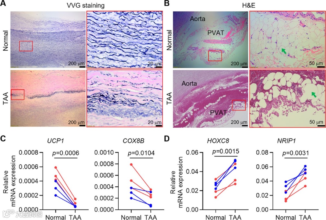 1.患者样本剖析:研究团队收集 TAA 患者的 PVAT 样本,从微观的细胞形态到分子层面,仔细对比与健康样本的差异,探寻 TAA 患者 PVAT 的特异性变化。