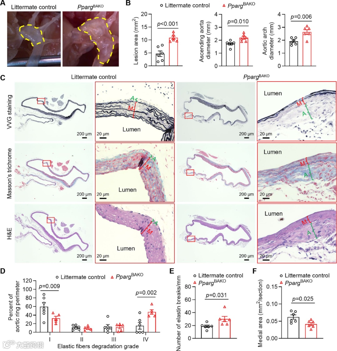 2.小鼠模型构建:构建棕色脂肪细胞特异性 Pparg 敲除(PpargBAKO)小鼠模型,让其 PVAT 失去正常功能;同时构建 Prdm16 敲除(Prdm16BAKO)小鼠模型,使 PVAT 呈现白色化特征。借助这两种模型,观察 PVAT 功能异常如何影响 TAA 的形成。