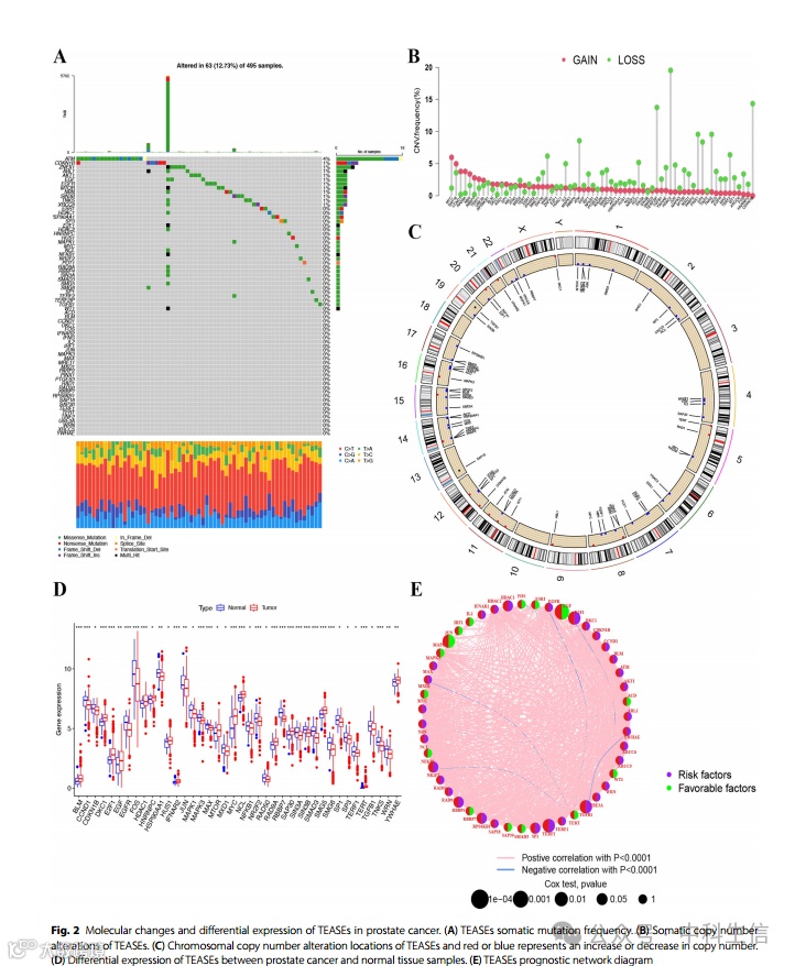 Fig.2 前列腺癌中TEASEs的分子变化及差异表达