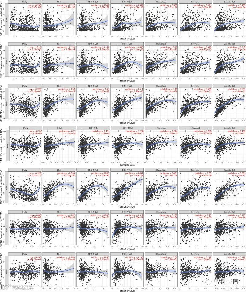 HNSCC中基因表达和肿瘤浸润免疫细胞的分析(图6)。