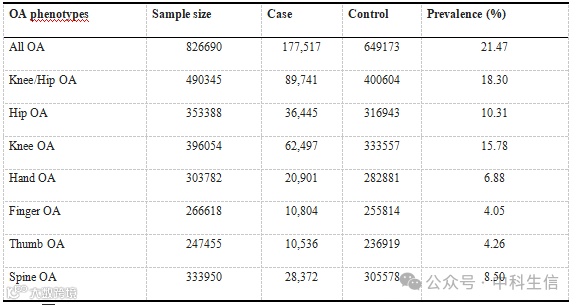 骨关节炎(Osteoarthritis,OA)是最普遍的肌肉骨骼疾病之一,也是老年人口疼痛和残疾的主要原因。然而,潜在的生物学机制尚未完全了解。本研究旨在揭示循环代谢物对OA易感性的因果关系。