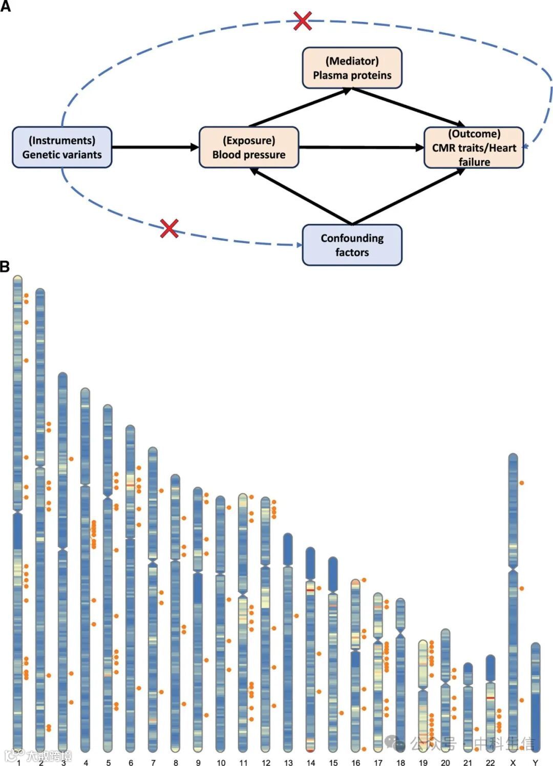 心脏重塑是对慢性压力超负荷的一种生理适应。高血压会诱导免疫细胞浸润心肌,导致细胞因子和生长因子的分泌,从而在心脏重塑的病理过程中形成至关重要的心脏局部炎症微环境。除了在局部起作用的自分泌或旁分泌蛋白外,循环血浆蛋白也有助于介导高血压、心肌重塑和随后的心力衰竭等病理过程。最近的一项孟德尔随机化(MR)研究发现,6种循环血浆蛋白会影响血压水平,包括N端前B型钠尿肽、尿激酶型纤溶酶原激活剂、肾上腺髓质素、IL(白细胞介素)-16、细胞纤维连接蛋白和胰岛素样生长因子结合蛋白3。长期暴露于与高血压相关的血流动力学压力会导致炎症、免疫激活和心肌损伤,从而改变血浆蛋白谱。然而,具体是哪种血浆蛋白介导了高血压驱动的心脏重塑和心力衰竭的成因途径仍不清楚。