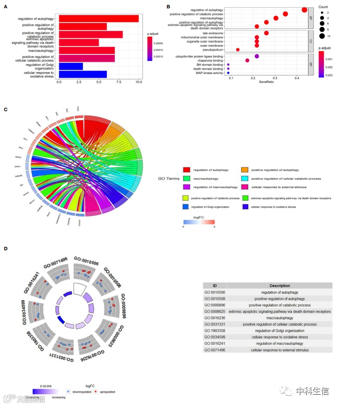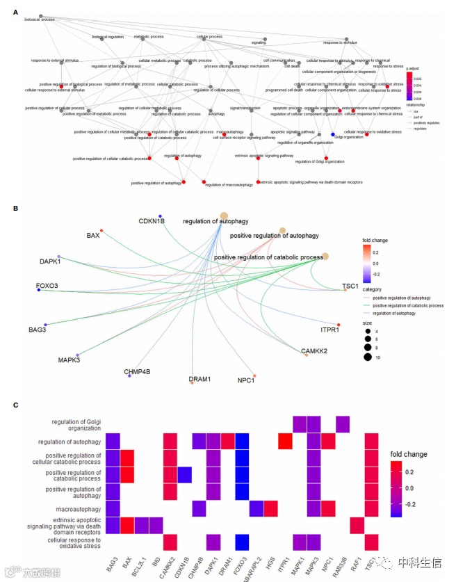 差异表达的自噬相关基因的功能和通路富集