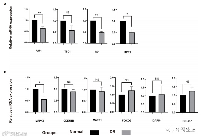 4.采用高糖孵育的视网膜色素上皮细胞系(ARPE-19)模拟DR模型,通过定量实时聚合酶链反应(qRT-PCR)验证关键基因的mRNA水平。